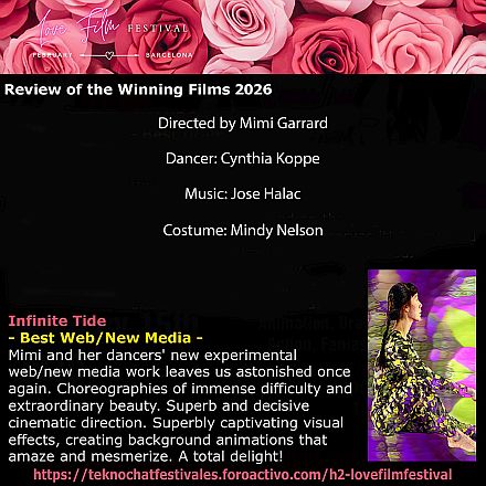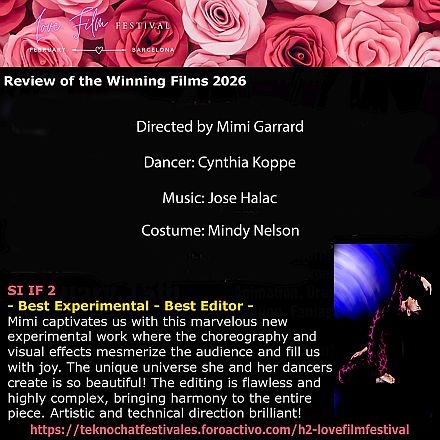 Most recently Mimi Garrard is experimenting in new ways, creating dance for video using digital techniques to transform the dance material. Her work in this area is unique and is gaining increasing attention. This work is shown internationally on television, in museums and galleries, and in festivals. It was also shown on the dome of the planetarium in Jackson, Mississippi, and on the BBC BIG screen throughout England. Over the last three years she participated in 2,536 international festivals and won 1,385 first place awards. She won the Distinguished Alumnae Award from Sweet Briar College in 2019.