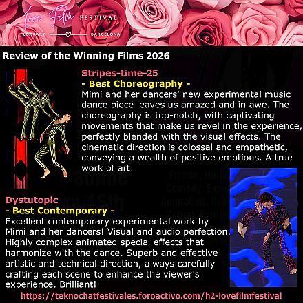 She has a half hour monthly television program on Manhattan Neighborhood Network in Manhattan, New York that is streamed live at the time of broadcast (251 programs to date). Mimi is the recipient of a life time achievement award from the Institute of Arts and Letters in Mississippi for her outstanding achievement in dance both for video and for the stage.